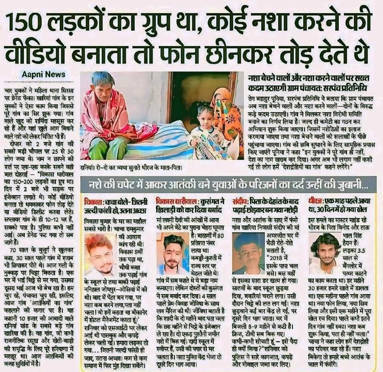 #हरियाणानशा, #सिरसाग्रेनेडहमला, #खारियागांवनशा, #चिट्टाहरियाणा, #नशाविरोधी #अभियानसिरसा, #हरियाणाअपराधन्यूज़